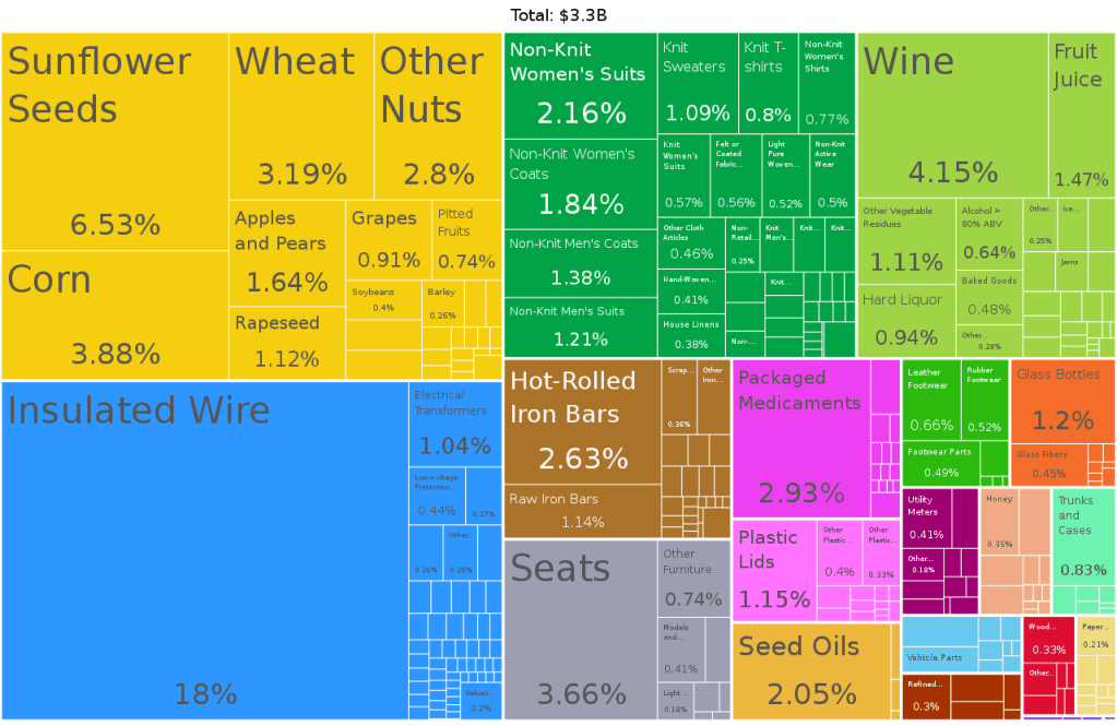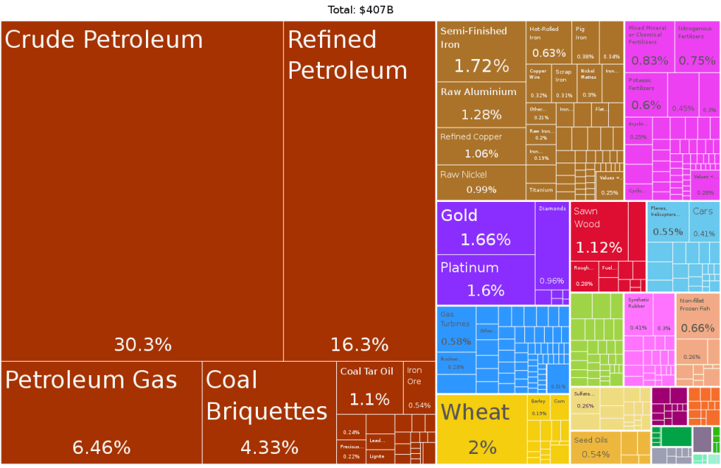 2019 figures comparing Moldova and Russia’s economy. Russia’s is over 75% extractive resource industries. Moldova’s has no noticeable extractive resources on the chart (I am counting wood products as renewable in both cases. Which of these economies will be more resilient to change and disruption? Which one will be easily brought to it’s knees by sanctions. Well, rapidly anyway, if not ‘easily’. Russia’s is 120 times bigger by dollar value tho.