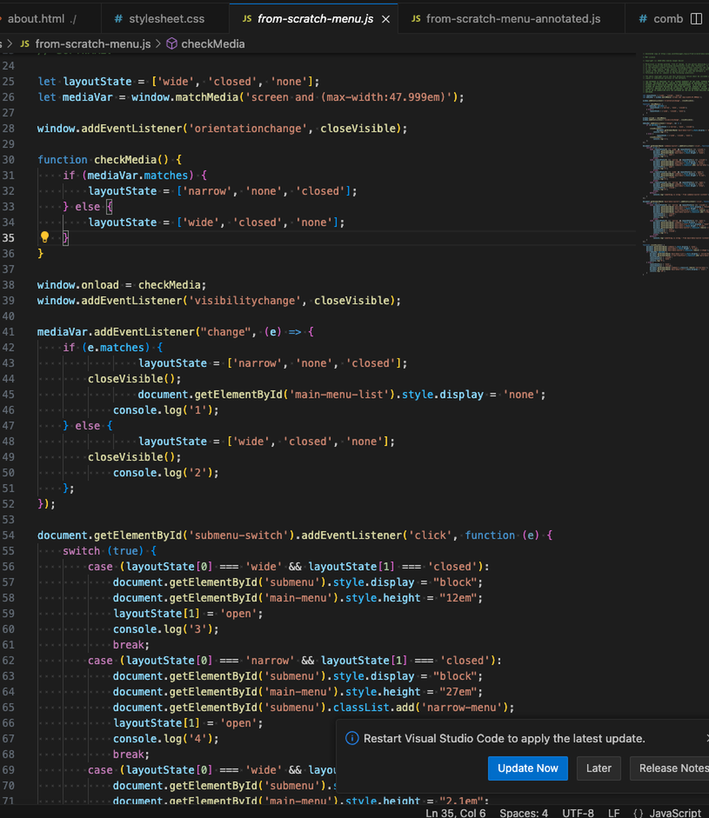 Project goal: A lot of small businesses and other site owners don’t need much more than static web pages, a contact form, and a well-functioning menu system where they can easily add and remove items. Many people have learned some HTML and CSS but not advanced into JavaScript or PHP. When I needed to expand my menu to beyond screen width and consequently add a submenu, even after learning significant JavaScript, I found it unworkable to extend the example code from PureCSS.io which I had been using.