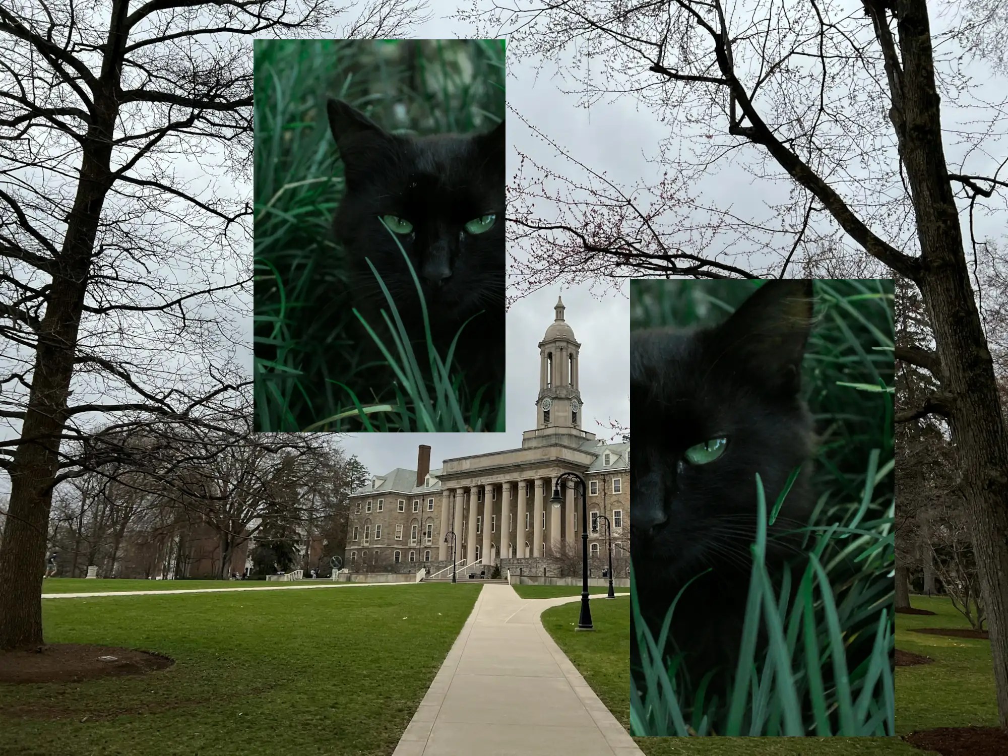 Cat, you are killing me, I said. At that moment, I did not care about returning Aphrodite to her owner. But curiosity got the better of me. I followed her through the dense undergrowth, spiky branches scratching my shins, a leaf in my mouth, a mosquito up my nose. At last I emerged into a placid, verdant landscape.