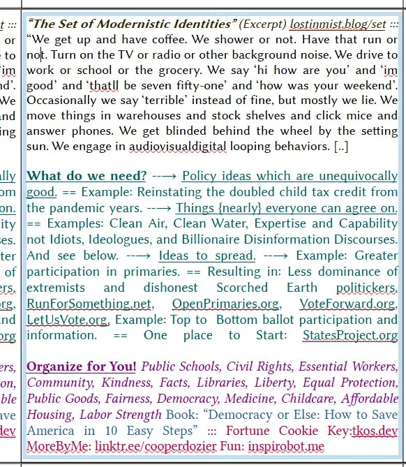 irritating that wordpress can’t even properly handle syndicating a ‘Verse’ Block into its own read function. hence the extra spaces and slashes. I no longer have to shift-enter, but it still runs lines together when read anywhere it syndicates to instead of my actual blog – domain. After all these years we still can’t resolve this? and hanging indent is default for long/broken lines or paragraphs in verse. get with the f u c k i n’ middle school intro to poetry assignment (not a course, just a single day of homework, surely you saw one poetry assignment in school guys?