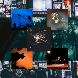 […] in the ever turning evening / we blossom ever into thus / and seeing our terrors not upon us, / we rest merrily and seeing our lives blossom, / we dream into darkness, […]