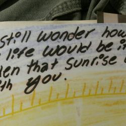 The thing you never notice The tiles on the floor They run in checkered patterns & line borders Maintain the veneer of the clock-world Whitish speckle, perfect level, hard concrete for your toes Until one day, you’ve noticed someone took a special touch Made it more inviting, disordered your morning rush